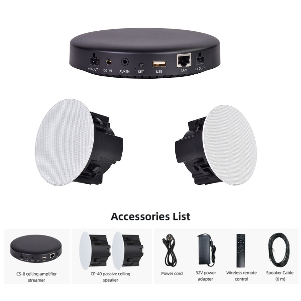 ลำโพงไร้สายแบบฝังเพดาน Cloudyx CS-8 | อินพุต USB และ WiFi แบบดูอัลแบนด์ขนาด 6.5 นิ้ว สำหรับโฮมเธียเตอร์และระบบเสียงหลายห้อง