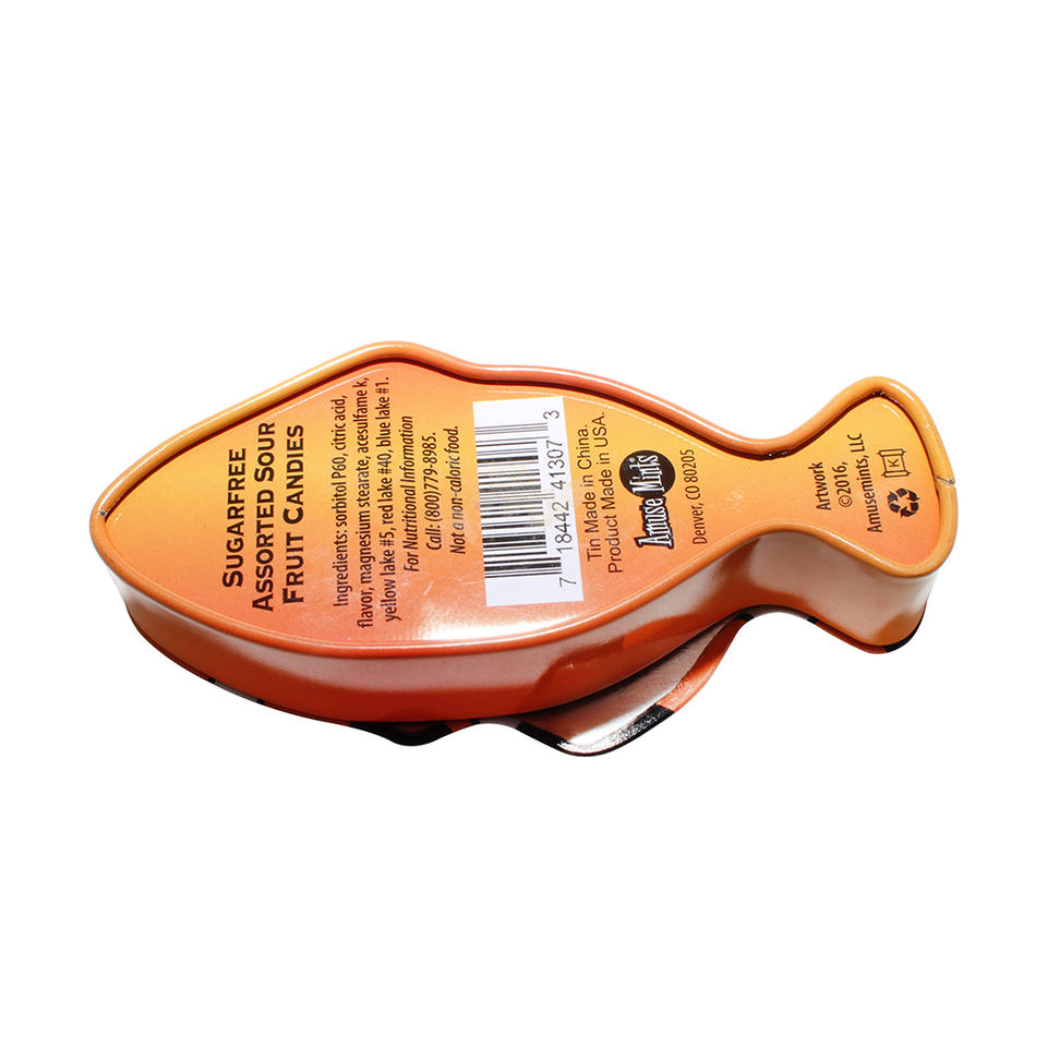 กระป๋องโลหะเคลือบดีบุกเกรดอาหารสำหรับใส่ขนมและของว่าง ลายปลาการ์ตูนพร้อมโลโก้สั่งทำ