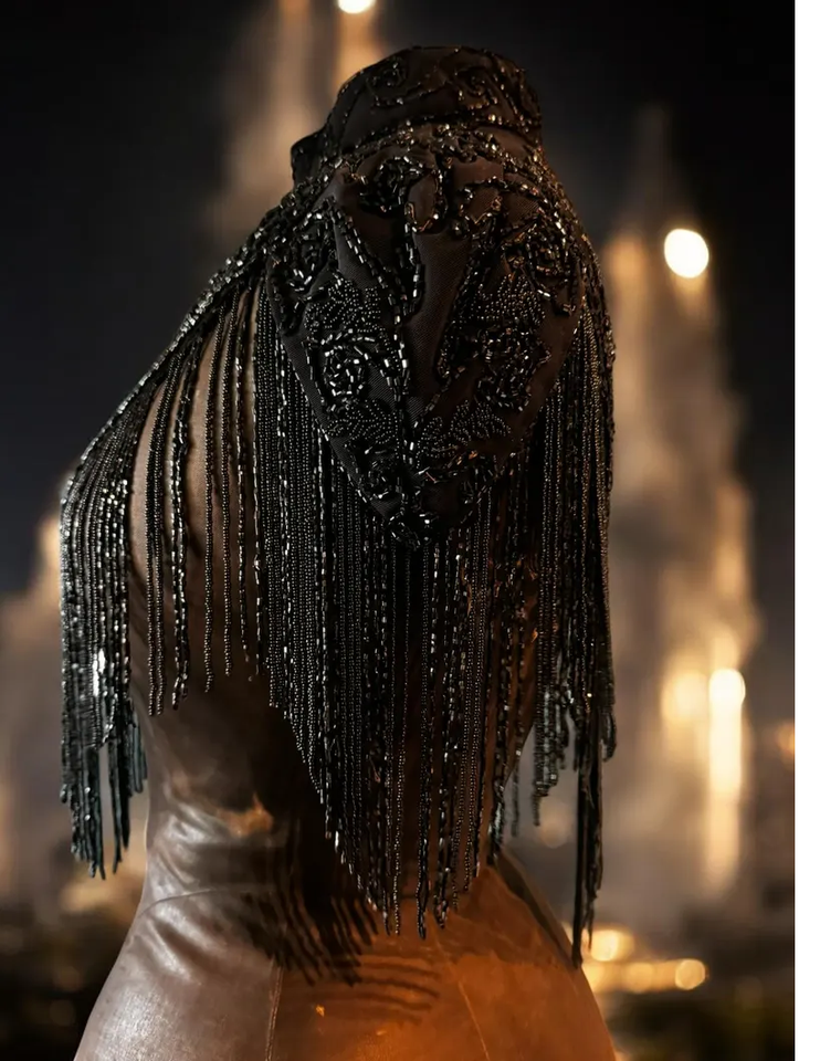 Gracefully Designed Ladies Beaded Cape Embroidered Pearls Crystal Anti-Static Breathable Polyester Organza Fabric Zaha