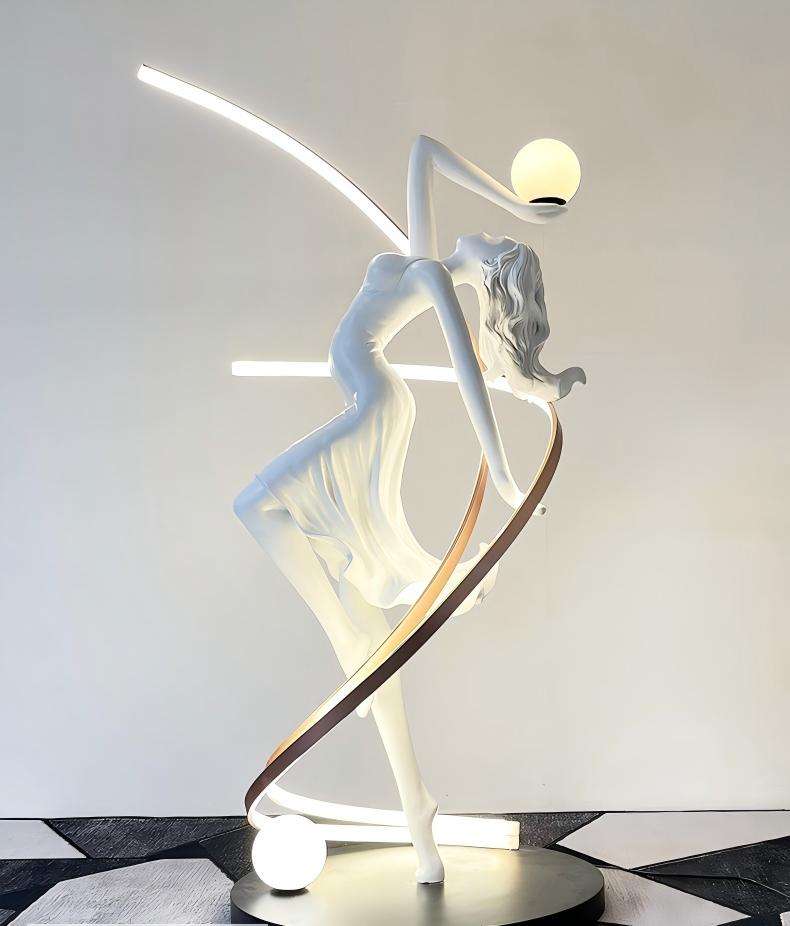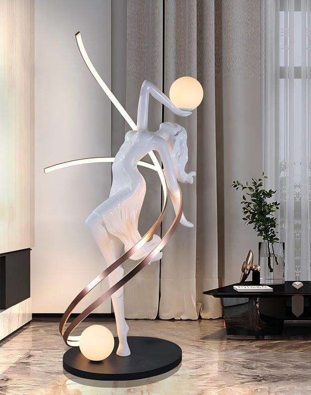 โคมไฟตั้งพื้นรูปปั้นเรซิ่นรูปนางระบำไฟ LED สีขาวในร่มที่ทันสมัย