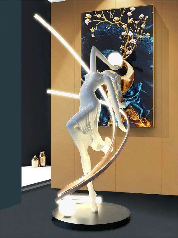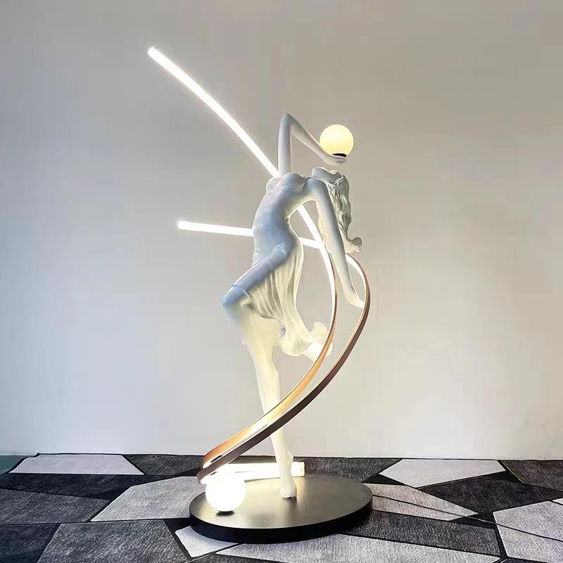 คีย์เวิร์ด:โคมไฟตั้งพื้นรูปปั้นเรซิ่นรูปนางระบำไฟ LED สีขาวในร่มที่ทันสมัย