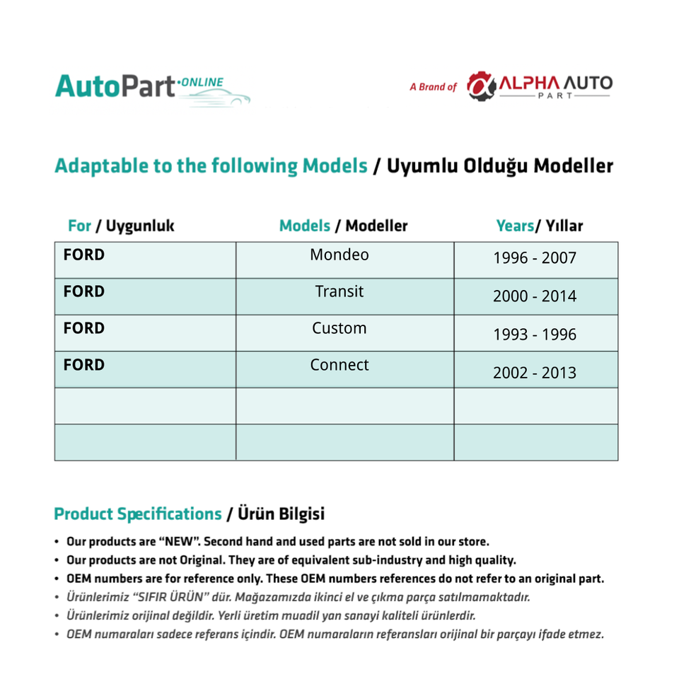 คลัตช์/ยางแป้นเบรกสำหรับ Ford Mondeo, การขนส่ง, กำหนดเอง (จัดส่งจากผู้ผลิตตุรกี) รหัสผลิตภัณฑ์: PDL2215