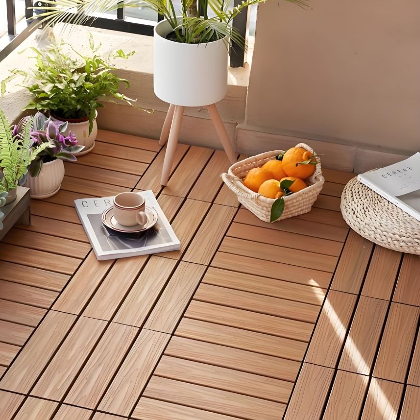 พื้นระเบียงไม้เทียม WPC สำหรับกลางแจ้ง ขนาด 30*30*2.3 ซม. ผลิตด้วยกรรมวิธี Co-extrusion สีเบอร์ลี่วูด สำหรับระเบียง