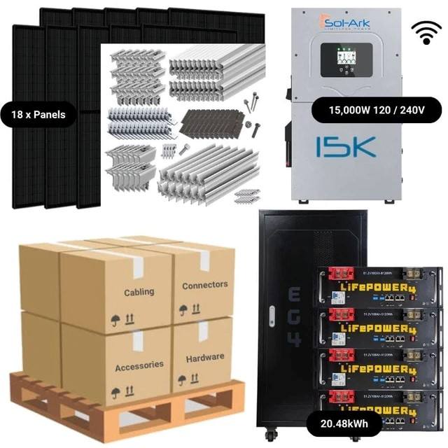 Co MPL Ete ระบบพลังงานแสงอาทิตย์ Sol-Ark 15K 20.48kWh - 28.6kWh แบตเตอรี่ลิเธียม18X410W แผงโซลาร์เซลล์โมโน CE