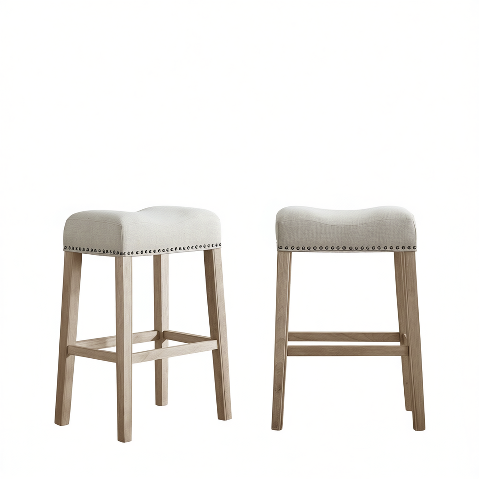 ชุดเก้าอี้บาร์โคโค่ 2 ตัว ฐานไม้หุ้มเบาะสีแทน ความสูง 29 นิ้ว ดีไซน์ร่วมสมัยแบบไม่มีพนักพิง