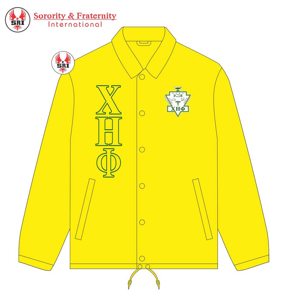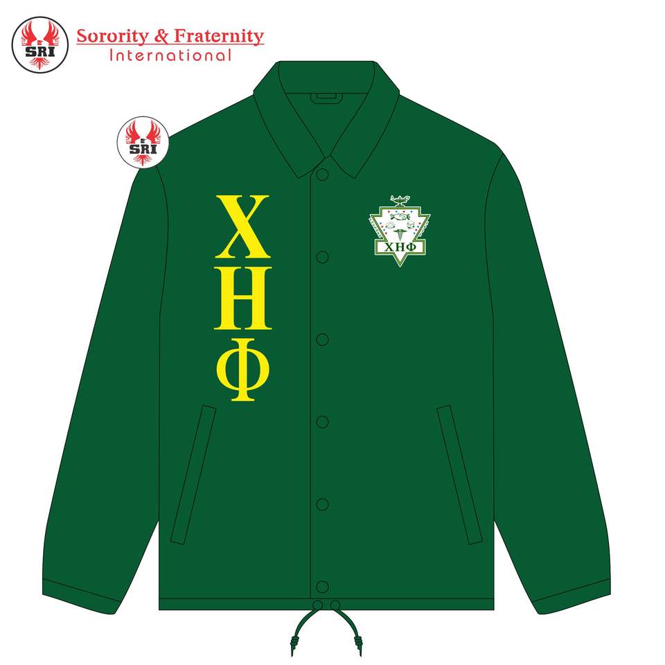 เสื้อโค้ชแจ็คเก็ต Chi Eta phi เสื้อผ้ากรีกผลิตภัณฑ์เสื้อกันลมมีกระดุมติดซิปพร้อมเชือกรูดแจ็คเก็ตกลางแจ้ง