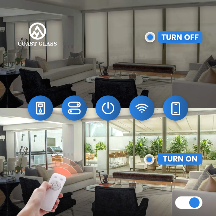 ฟิล์มกระจกอัจฉริยะ PDLC แบบติดเอง สีขาวเทา มองไม่เห็น ปรับความเข้มแสงได้ด้วยระบบอิเล็กทรอนิกส์ สำหรับความเป็นส่วนตัว ใช้ได้กับหน้าต่างและประตู