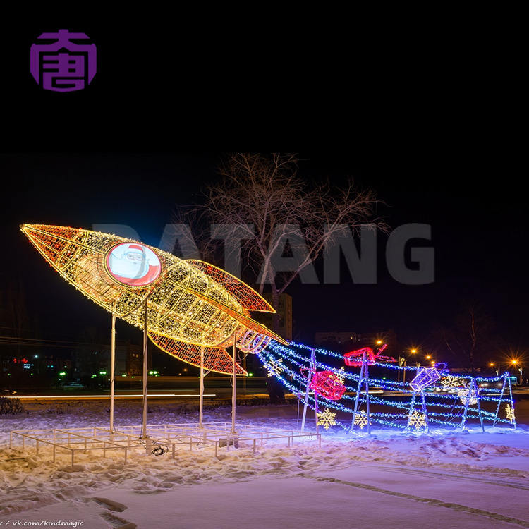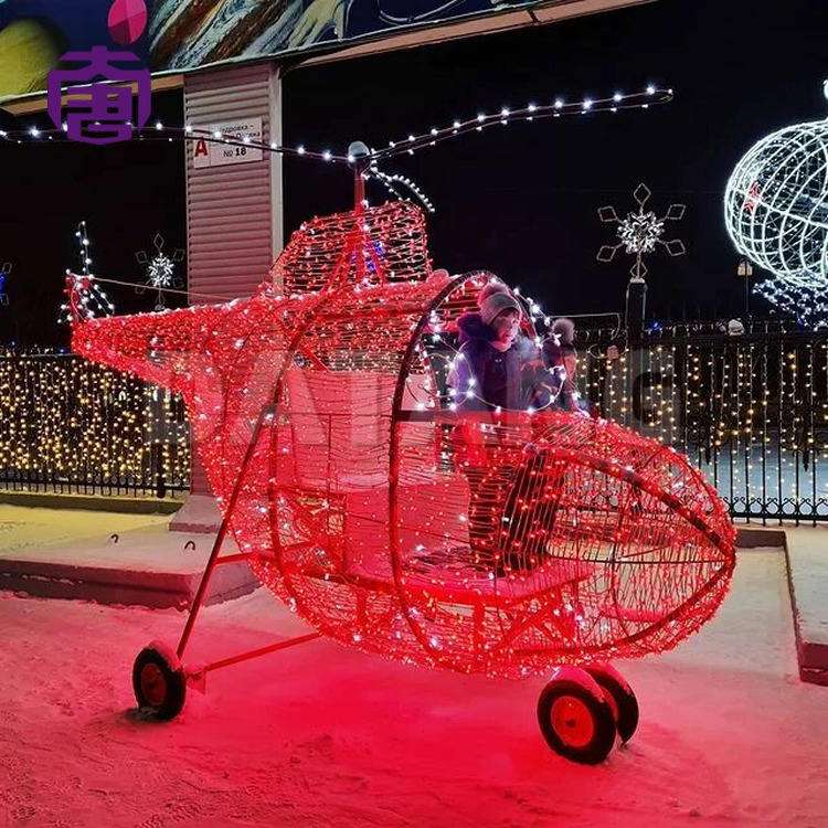 รีสอร์ทริมชายฝั่ง งานเทศกาลฤดูหนาว ไฟตกแต่งคริสต์มาสกลางแจ้งแบบ LED กันน้ำ รูปทรงเครื่องบิน 3 มิติ สำหรับตกแต่งภายใน