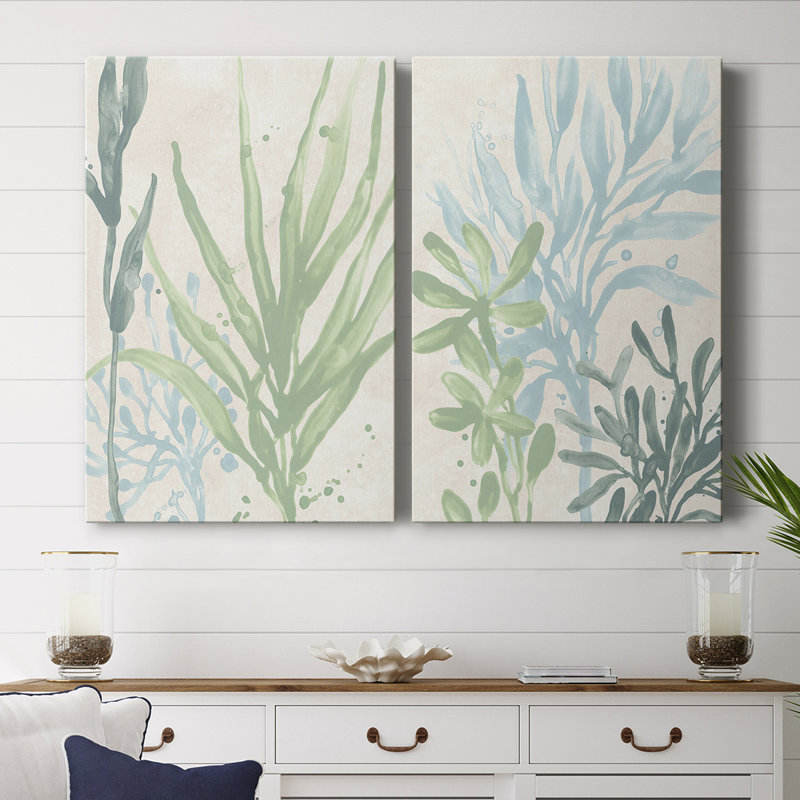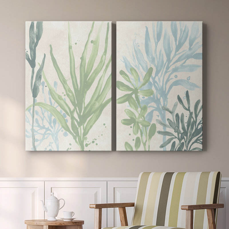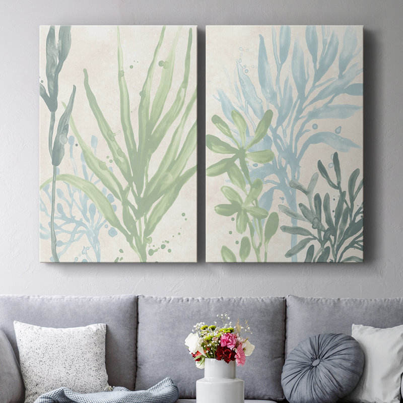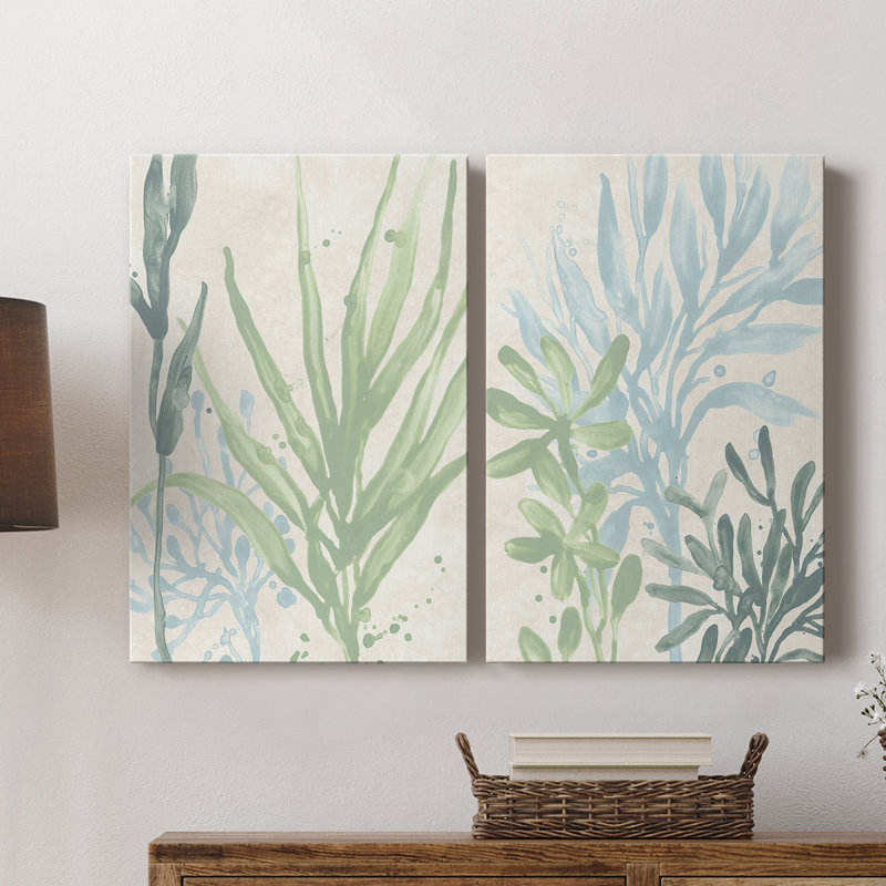 ชุดศิลปะผ้าใบติดผนังลายพิมพ์หญ้าทะเลแบบโยก2ผืน