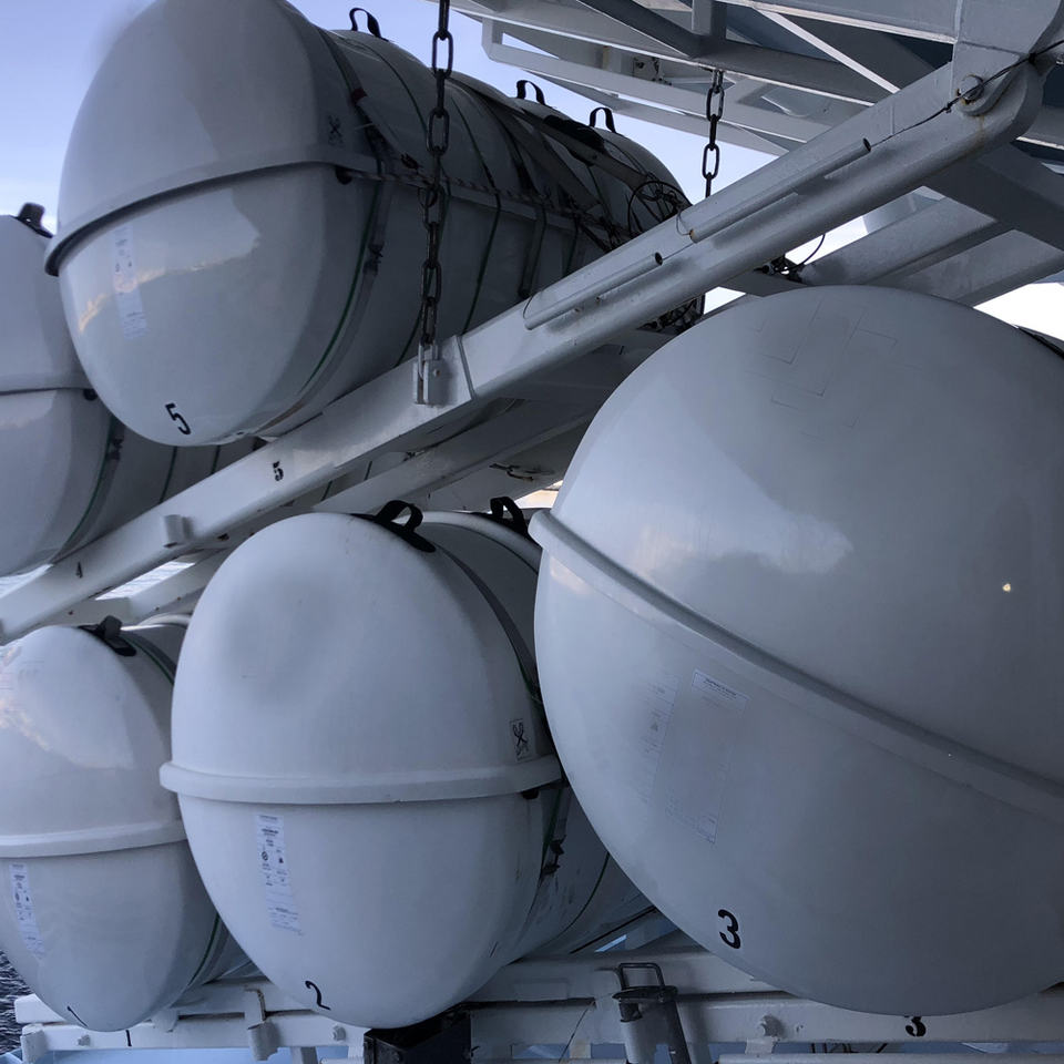 แพชูชีพมาตรฐาน SOLAS สำหรับเรือประมงเชิงพาณิชย์และเรือโดยสารขนาดเล็ก พร้อมชุดอุปกรณ์เอาตัวรอดพื้นฐานในกระเป๋าเดินทาง