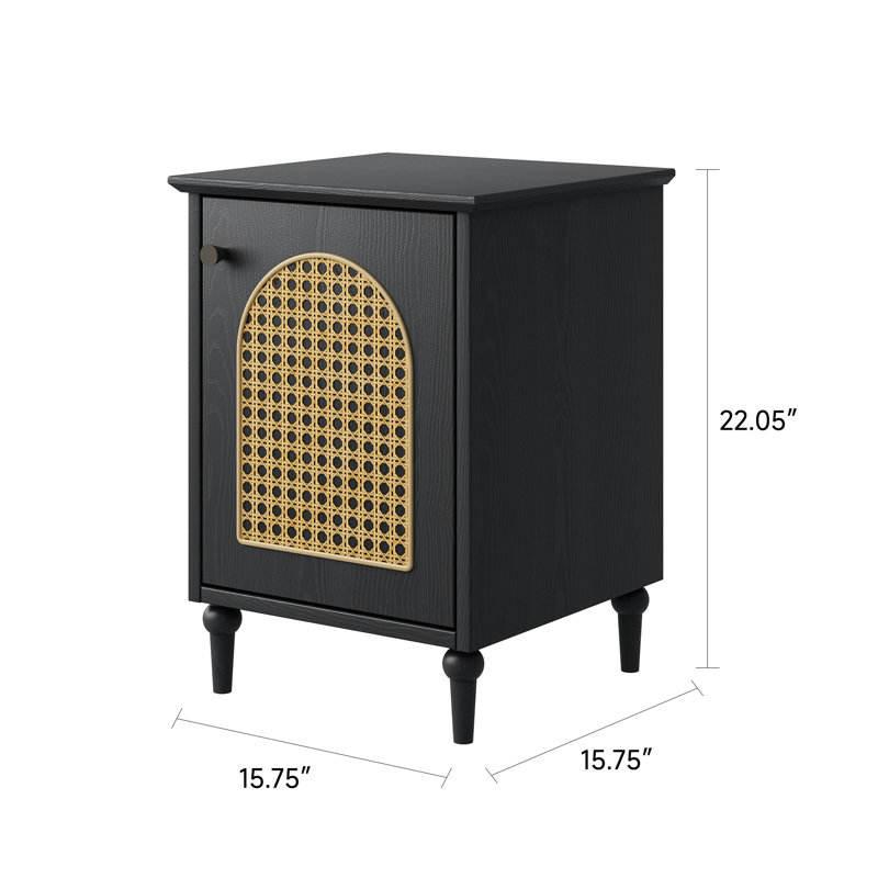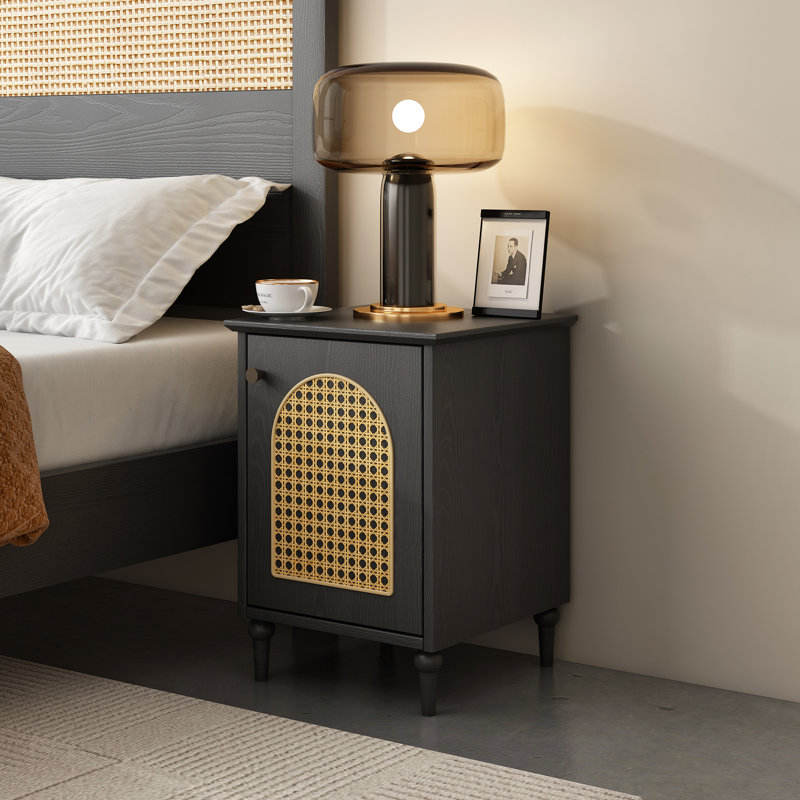 โต๊ะข้างเตียงทำจากไม้เฟอร์นิเจอร์ห้องนอนสไตล์ Boho โต๊ะหวายพร้อมโต๊ะข้างเตียงไม้