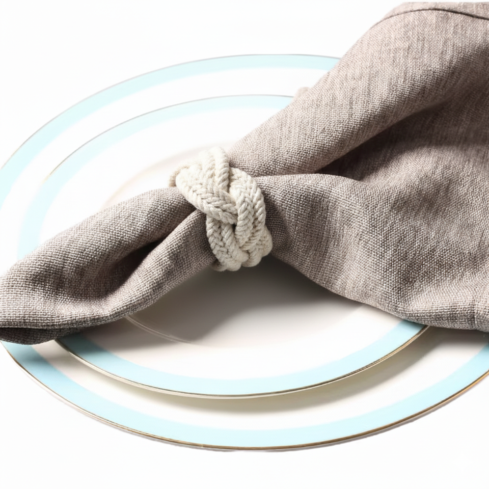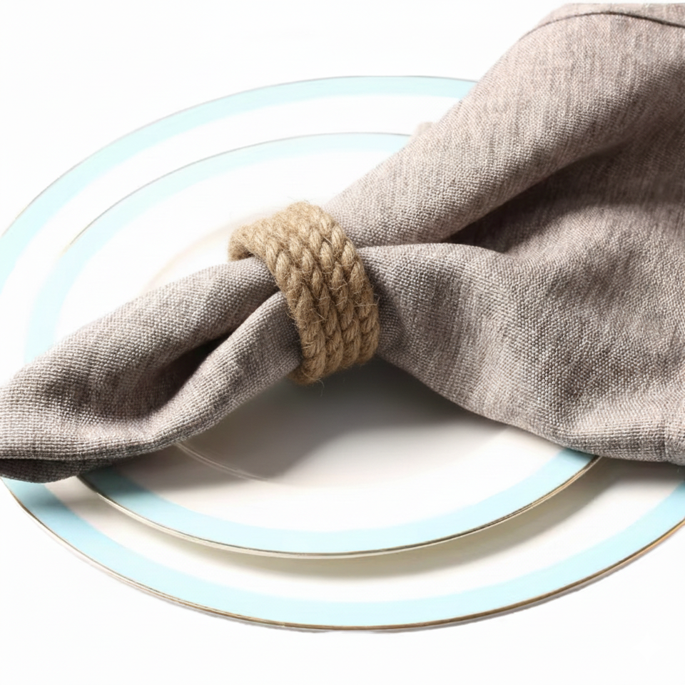 แหวนผ้าเช็ดปากเชือกผูกปมสไตล์ชายฝั่งที่ใส่โต๊ะทำจากเส้นใยธรรมชาติสำหรับใช้ในบ้านร้านอาหารงานเลี้ยงงานแต่งงาน