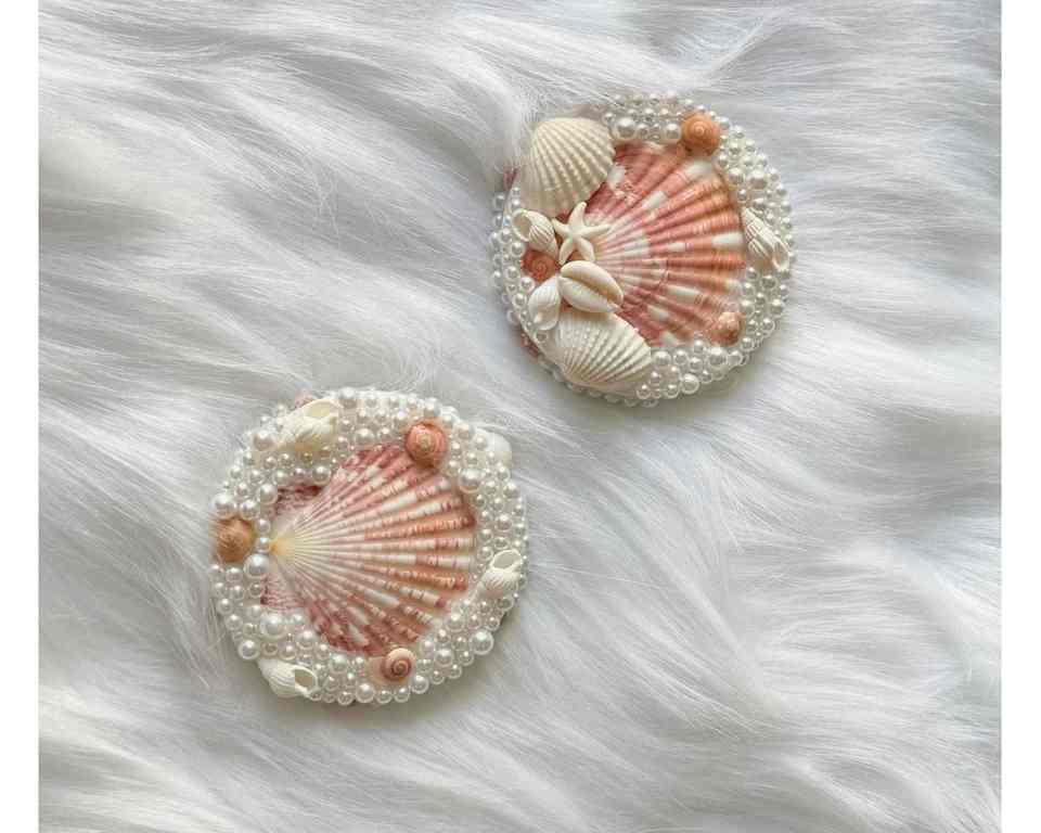 วัสดุ:เปลือกหอย, กระจกแก้ว, ริบบิ้น