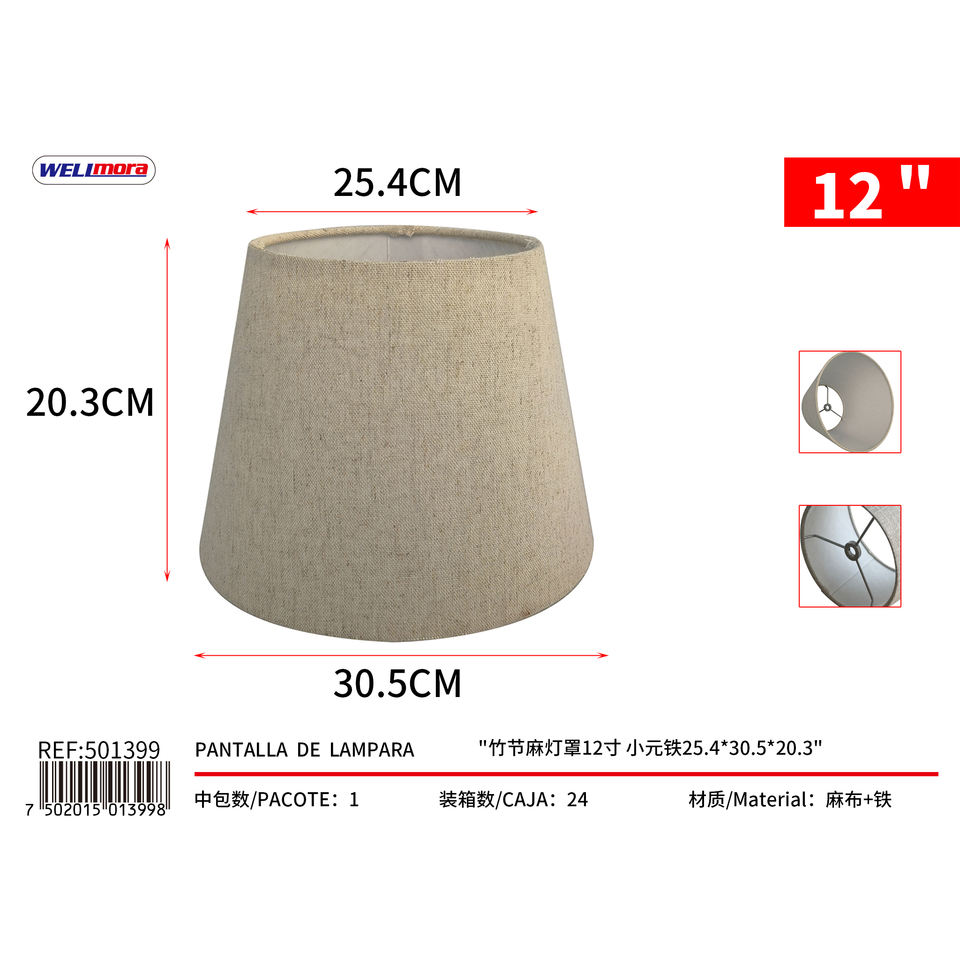 Shirong Indoor Lampshade 12 Inch Bamboo Hemp Bell Shape Small Iron Frame 25.4x30.5x20.3cm