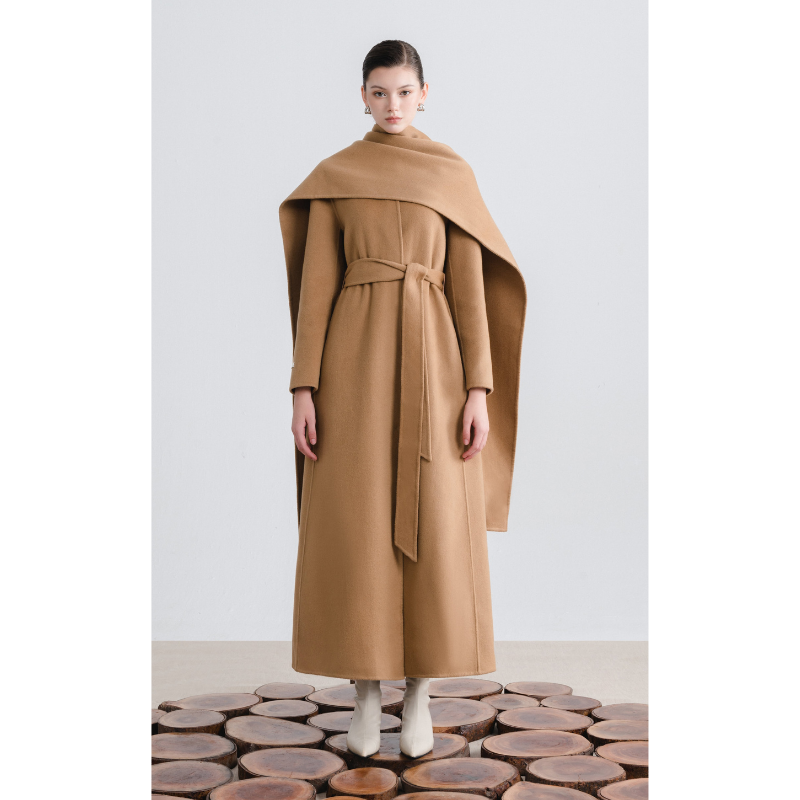 เสื้อคลุมสําหรับผู้หญิงคุณภาพสูง Miah แคชเมียร์เสื้อโค้ทยาวสีน้ําตาลสีขาว 20% แคชเมียร์ 80% ขนสัตว์แฟชั่นที่ยั่งยืนผู้ผลิตเดิม