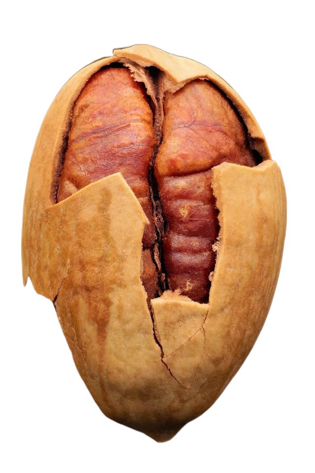 เปลือกพร้อมเมล็ดพีแคนทั้งเมล็ด
