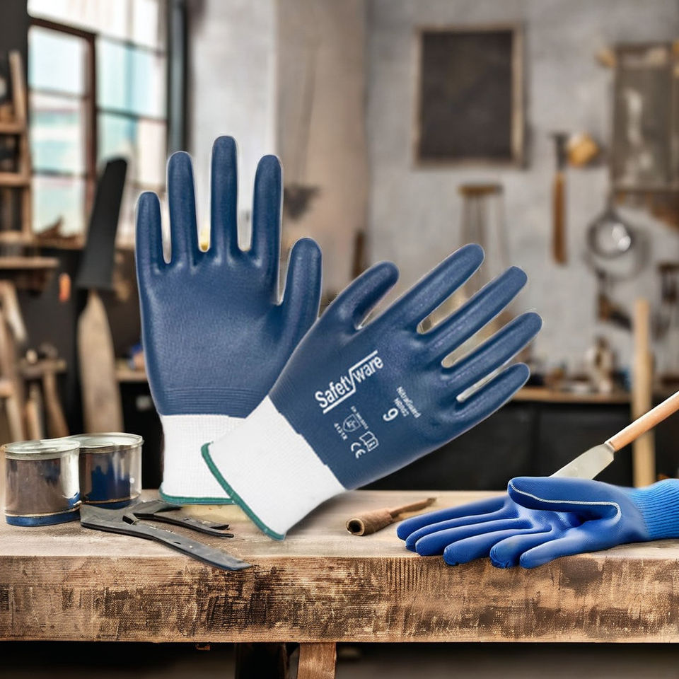 ถุงมือนิรภัยสำหรับงานเคลือบ EN388เส้นโพลีเอสเตอร์กันน้ำและทนน้ำมันพร้อมถุงมือนิรภัยฟังก์ชั่นกันลื่น