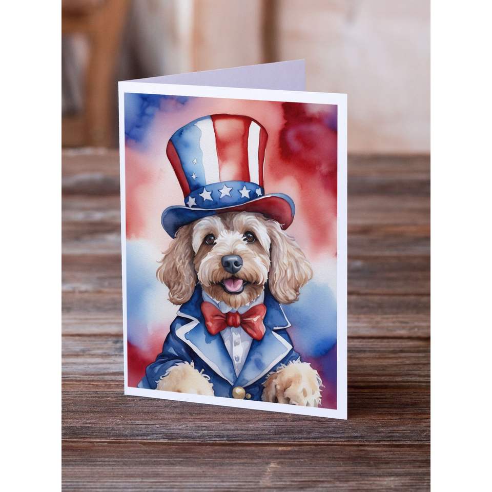 Cockapoo patriotic อเมริกันแปลกโน้ต A7เปล่าแพ็ค8ซอง5x7ขนาดการ์ดอวยพร