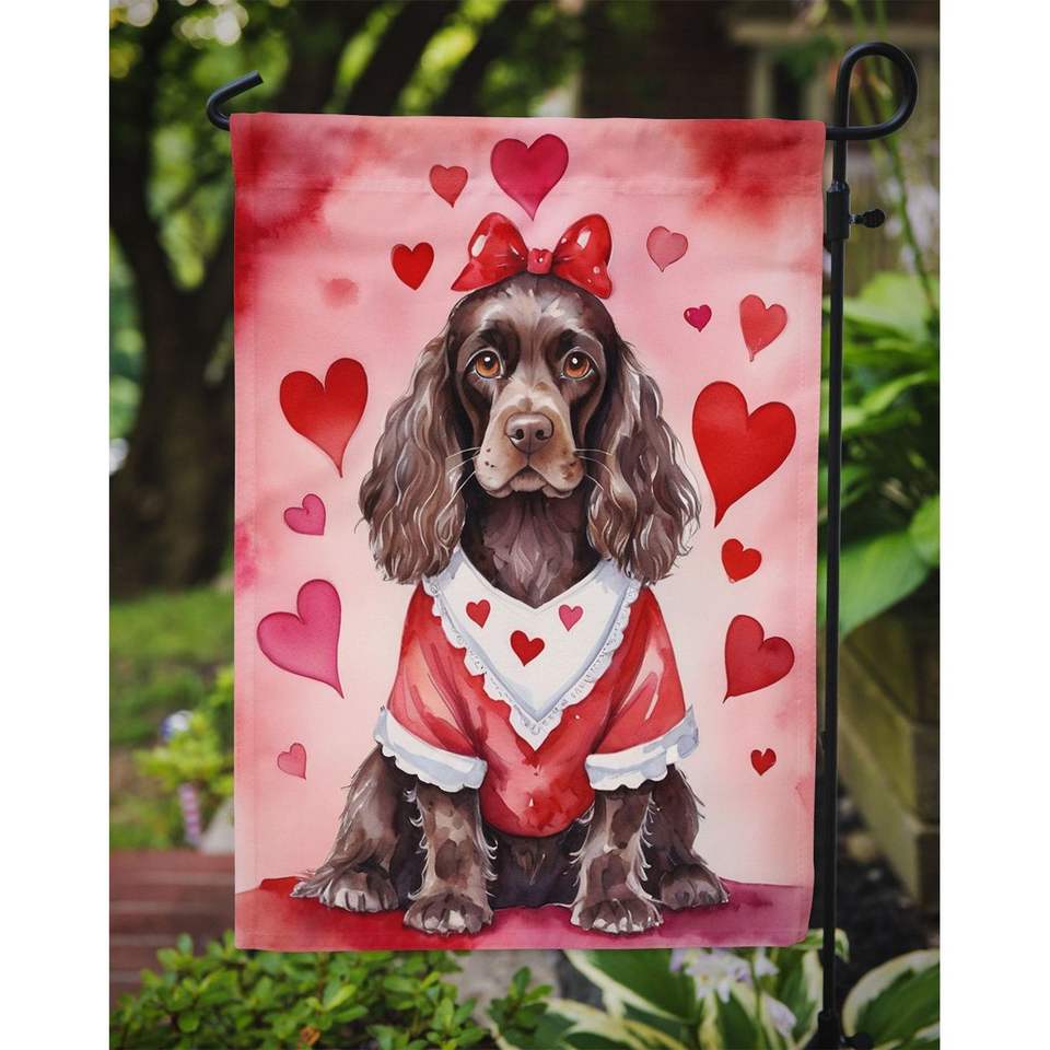 ค็อกเกอร์สแปเนียลธงสวนวาเลนไทน์ของฉันประดับกล่องจดหมายหลากสีแบนเนอร์สำหรับชานบ้านงานศิลปะและเตียงดอกไม้ขนาดเล็ก