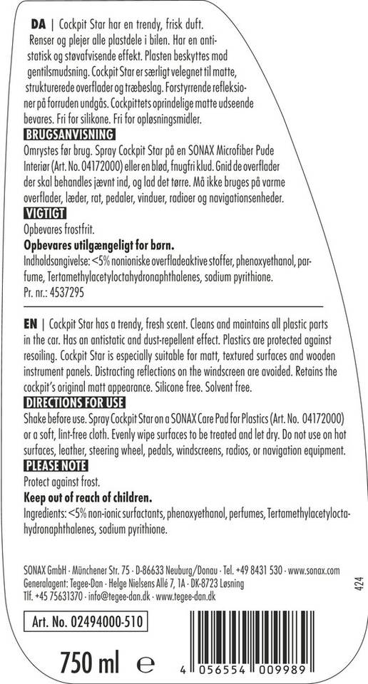 น้ำยาทำความสะอาดภายในรถยนต์ Cockpit Star 750 มล. สำหรับดูแลแผงหน้าปัดและเบาะนั่งในรถยนต์