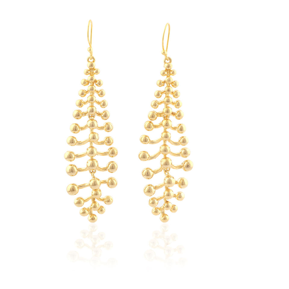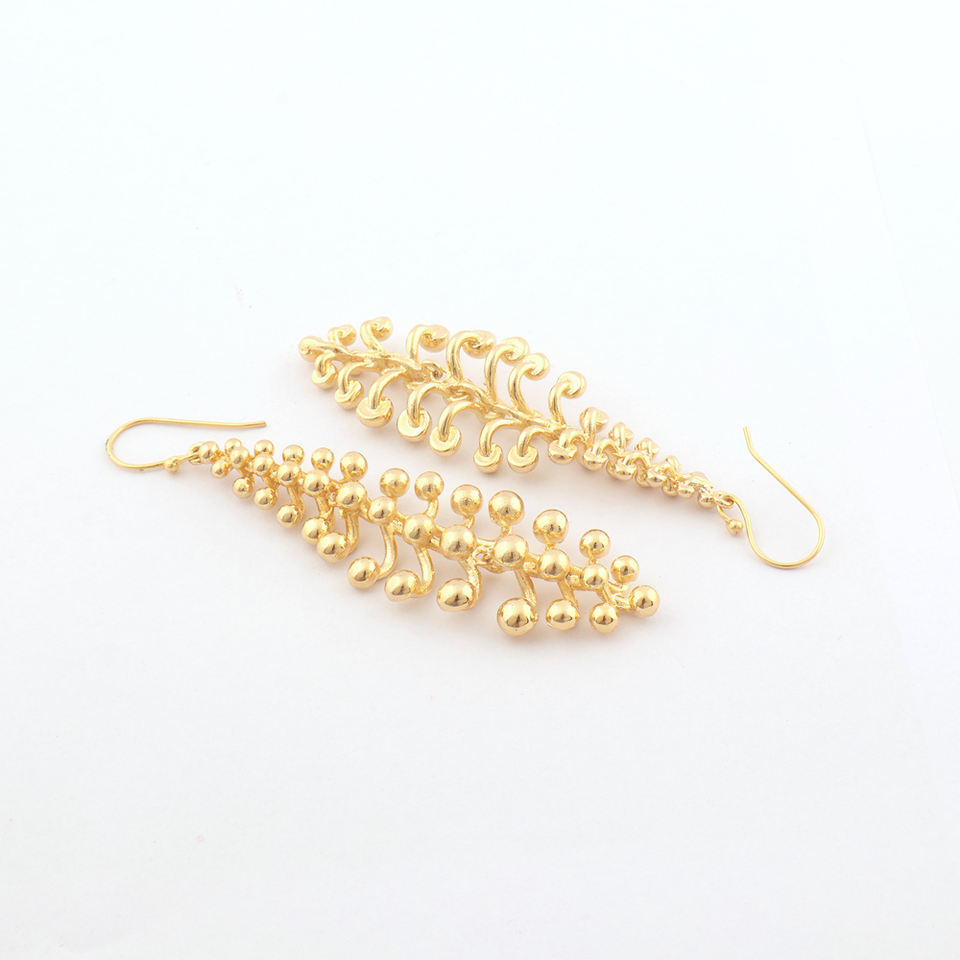 ค็อกเทลปาร์ตี้สวมใส่เครื่องประดับลูกปัดโลหะเครื่องประดับทองธรรมดาต่างหูหยดขนนกทองเหลืองชุบทองต่างหูสามชั้น