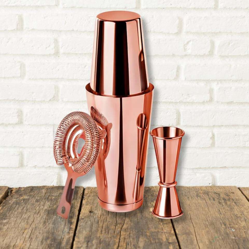 เชคเกอร์ค็อกเทลเคลือบทองแดง ความจุเยอะ เป็นมิตรกับสิ่งแวดล้อม ทนทาน อุปกรณ์บาร์เทนเดอร์ ดีไซน์ทันสมัย