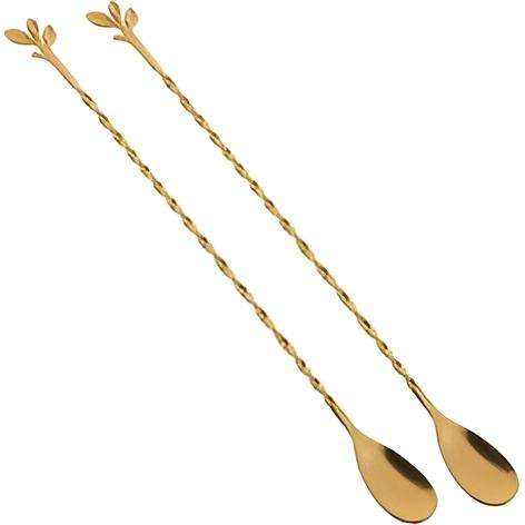ที่กวนค็อกเทลทำจากโลหะสำหรับเครื่องดื่มช้อนผสมภาชนะสำหรับงานปาร์ตี้ที่คนค็อกเทลชุบทอง