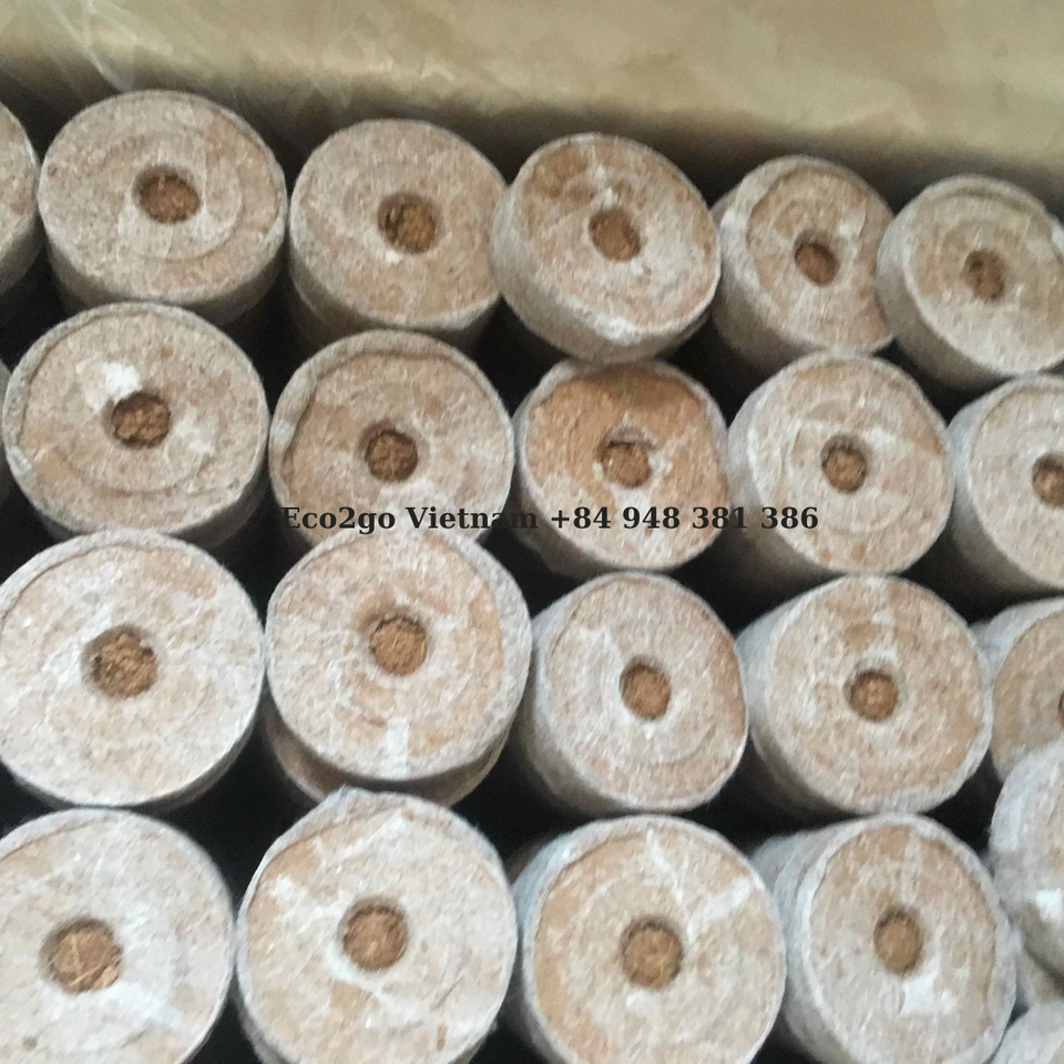 แผ่นดิสก์เริ่มต้นที่ยั่งยืนสำหรับการงอกของมะพร้าวแบบแผ่นใยมะพร้าวเป็นจำนวนมากหาได้จากประเทศเวียดนาม Eco2go