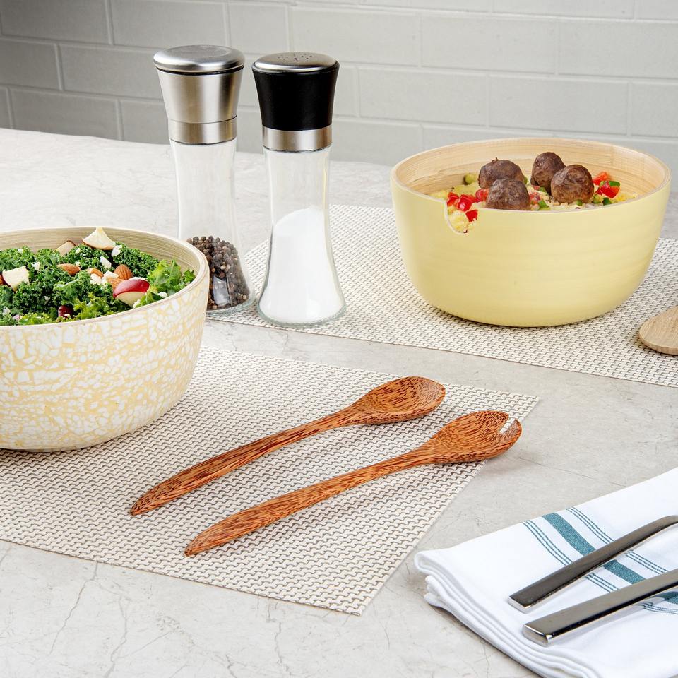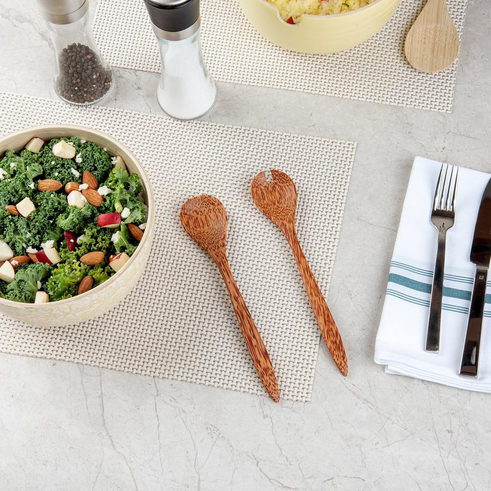 เซ็ตเซิร์ฟเวอร์ไม้มะพร้าวแบบเวียดนามเซ็ตสลัดผักและต้นมะพร้าว