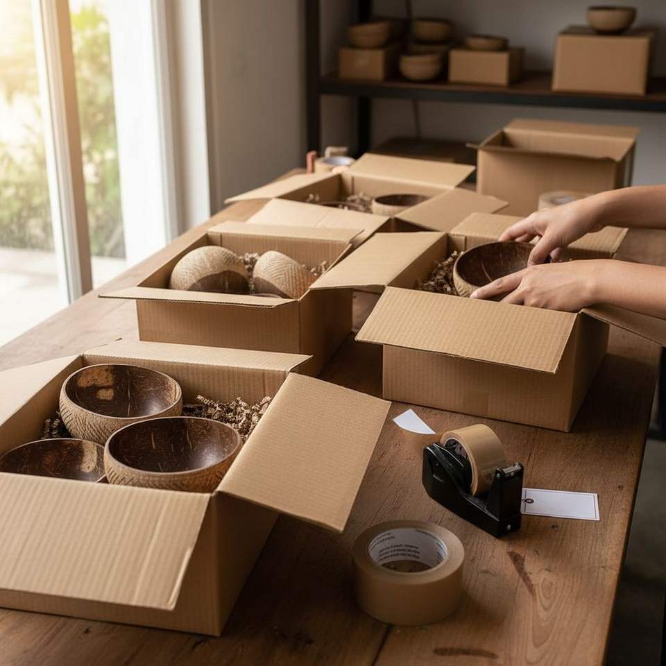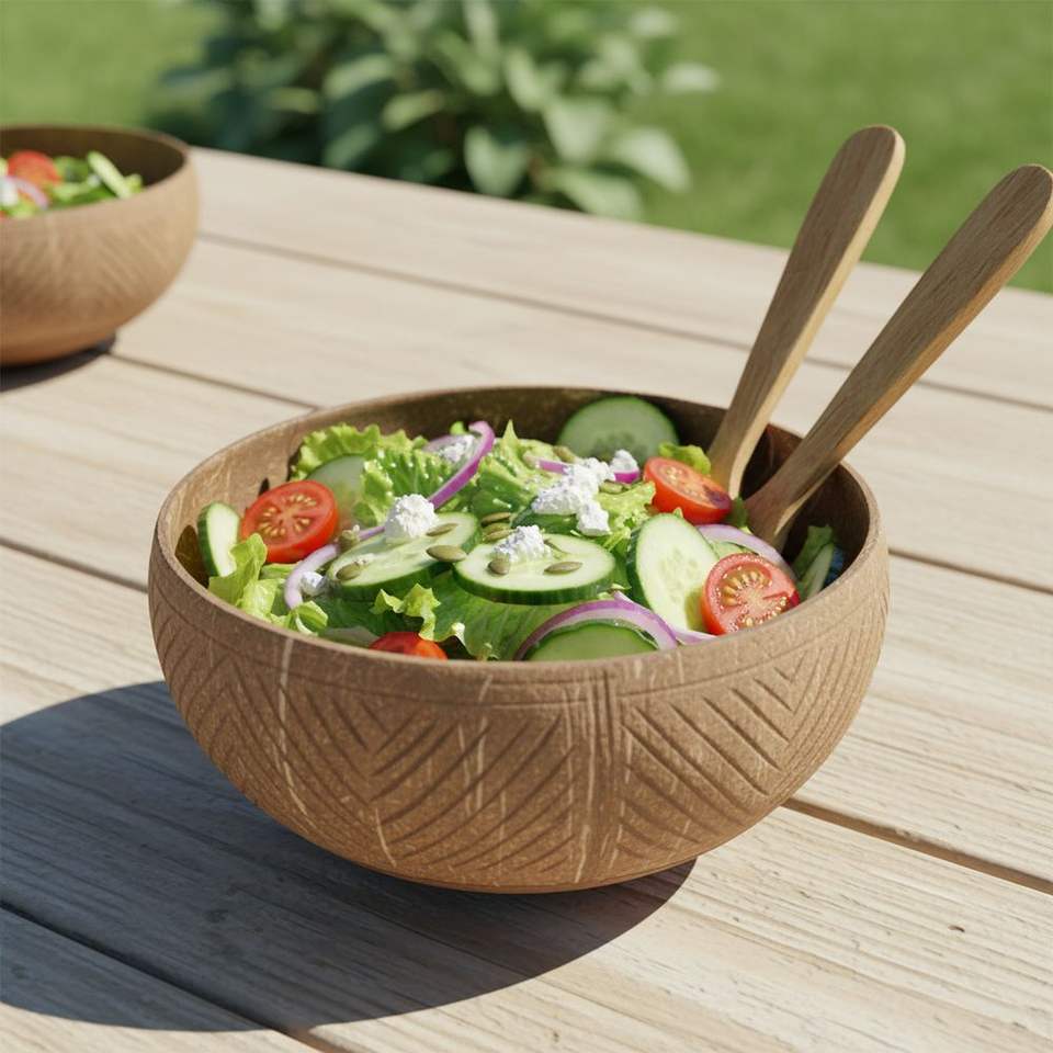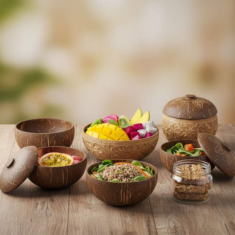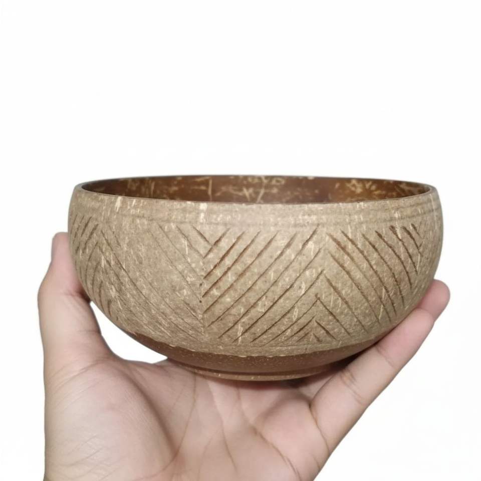 ชามเปลือกมะพร้าวธรรมชาติทำมือ เป็นมิตรกับสิ่งแวดล้อม ปลอดภัยสำหรับเครื่องล้างจาน ย่อยสลายได้ ภาชนะใส่อาหารบนโต๊ะอาหาร ชามเสิร์ฟ ผู้ผลิตจากเวียดนาม