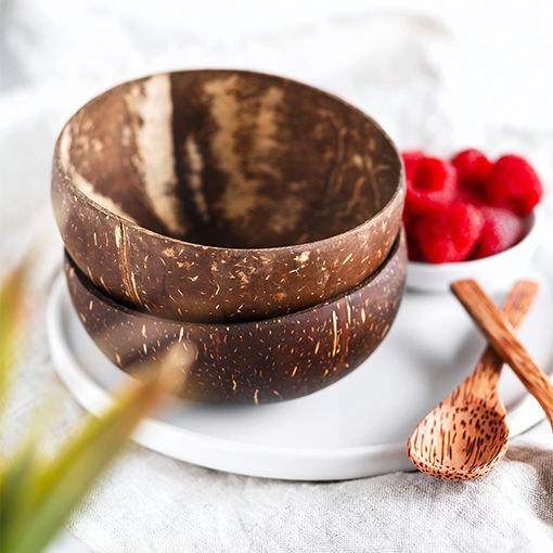 ชามมะพร้าวที่ให้บริการชามปั่น Acai ชามและช้อนของขวัญธรรมชาติที่ทำด้วยมือขัดด้วยน้ำมันมะพร้าวทนทาน