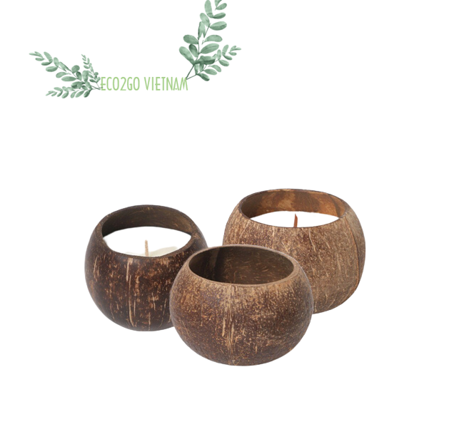 เทียนกะลามะพร้าว Eco2go เป็นมิตรต่อสิ่งแวดล้อมของเวียดนามพร้อมน้ำมันหอมระเหยวัสดุธรรมชาติสำหรับงานปาร์ตี้