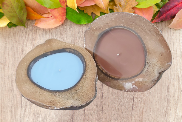 เทียนถั่วเหลืองเปลือกมะพร้าวหอมผลิตในเวียดนามสำหรับงานแต่งงานกลางแจ้ง