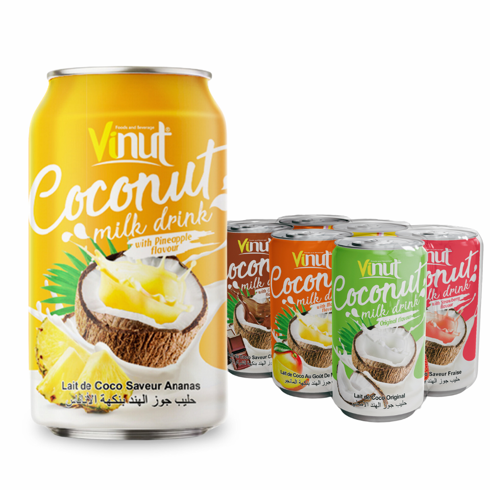เครื่องดื่มน้ำกะทิหลากหลายชนิด ตัวอย่างฟรี กระป๋อง 250 มล. VINUT HACCP ฮาลาล รับผลิตแบบ OEM แบรนด์ส่วนตัว ขายส่ง ผู้ผลิต