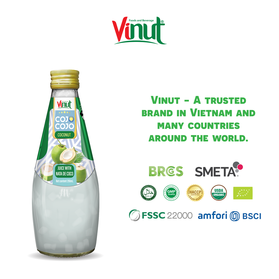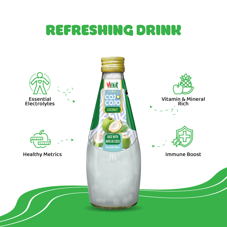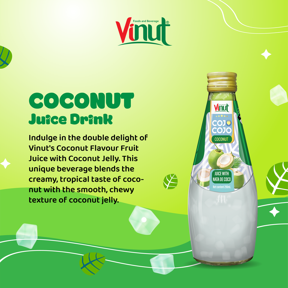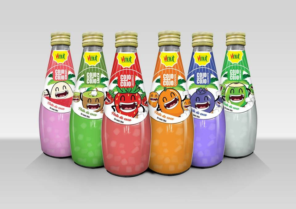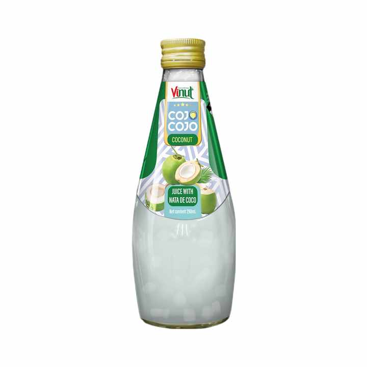 Coconut Nata de COCO เครื่องดื่มน้ำผลไม้290มล. cojo 24ขวดต่อกล่องขวดแก้วฉลากส่วนตัว OEM ตัวอย่างฟรีจากโรงงาน