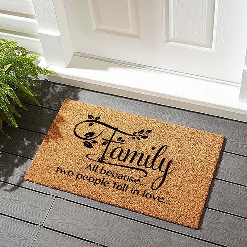 พรมเช็ดเท้าลายต้นมะพร้าวทรงสี่เหลี่ยมผืนผ้า ลายแปลกใหม่ กันลื่น สำหรับทางเข้าบ้าน พร้อมดีไซน์ตัวอักษรโนม