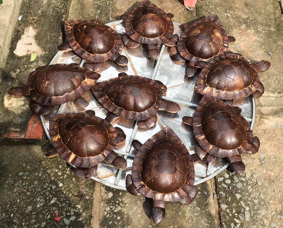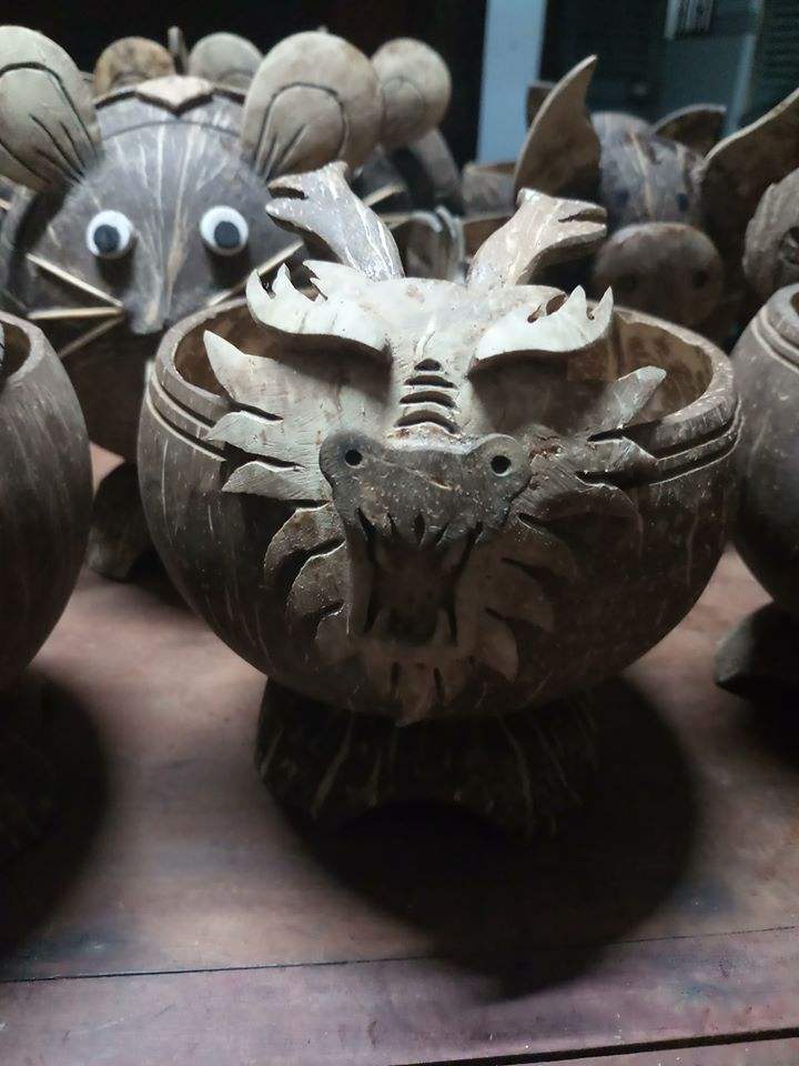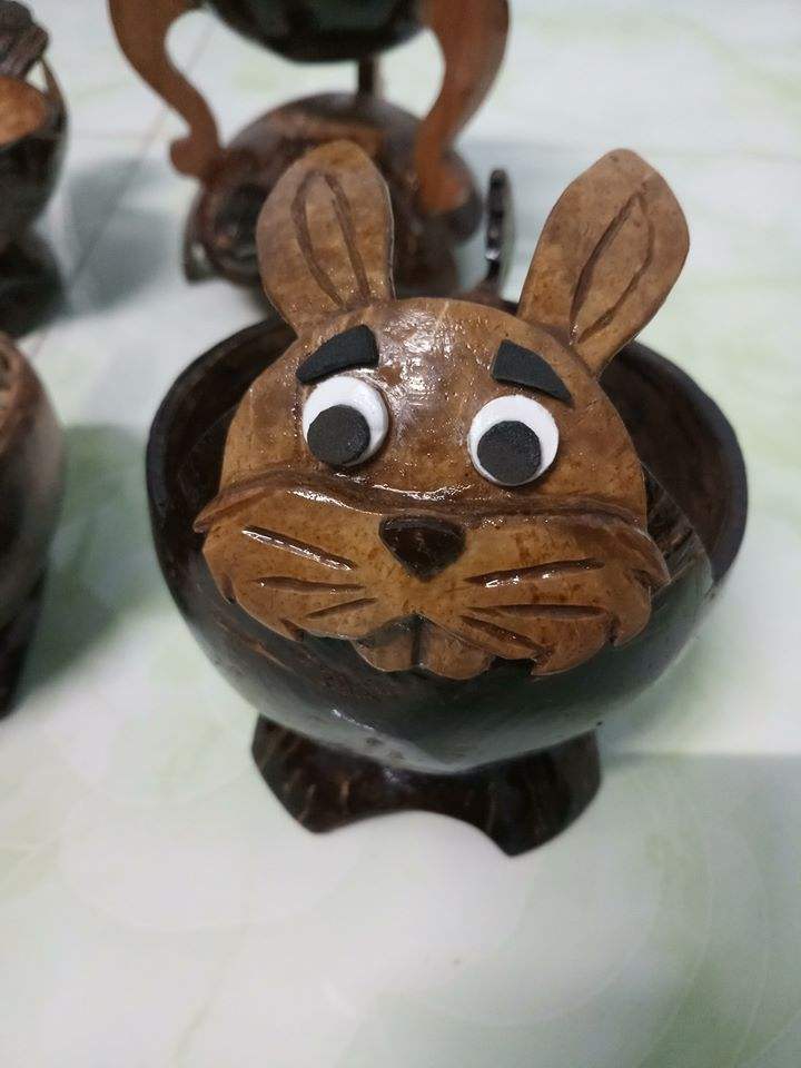 รูปปั้นสัตว์กะลามะพร้าวธรรมชาติเป็นแรงบันดาลใจของตกแต่งที่เป็นมิตรกับสิ่งแวดล้อมทำด้วยมือสำหรับห้องนั่งเล่นของคุณ