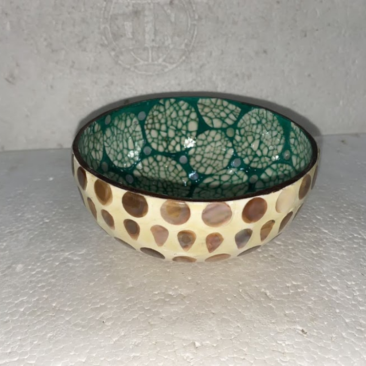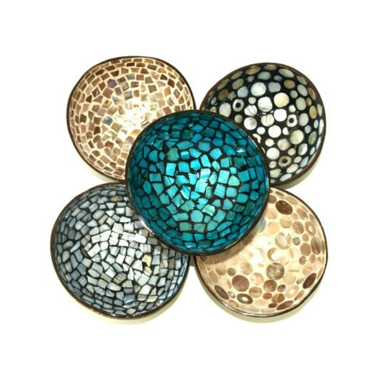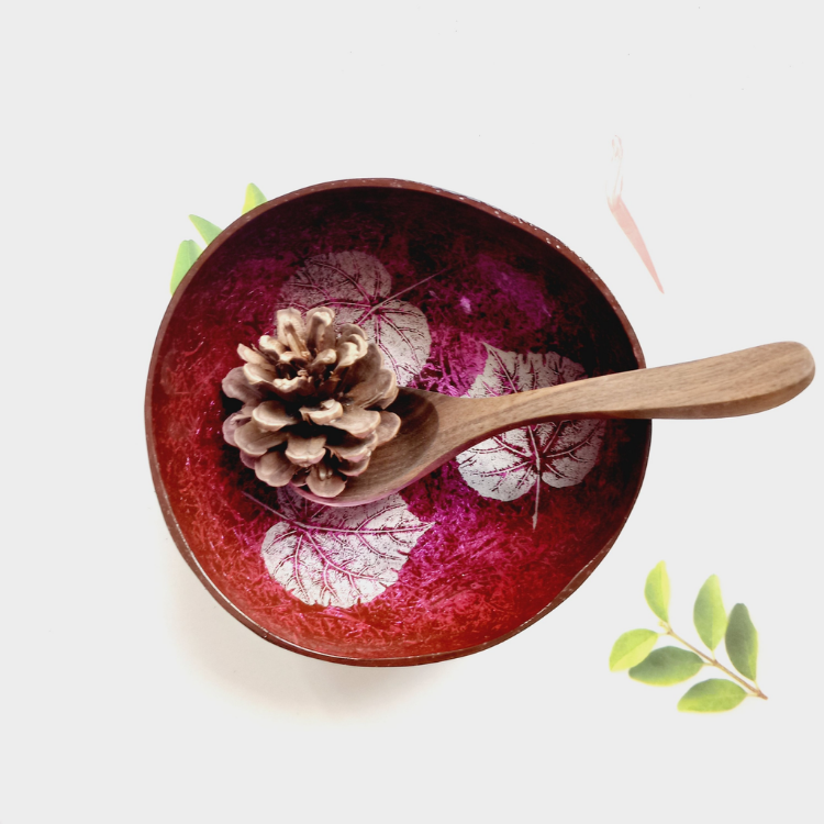 ชามทำจากวัสดุเคลือบกะลามะพร้าวออกแบบลายดอกไม้ทนทานงานหัตถกรรมเป็นมิตรกับสิ่งแวดล้อมผลิตจากเวียดนาม