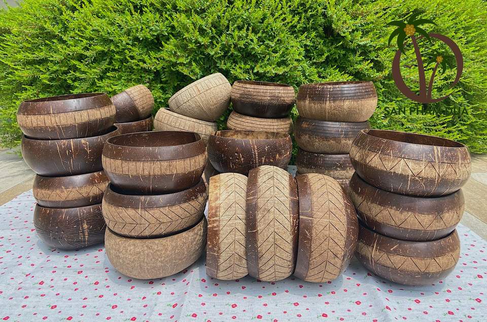 ชามมะพร้าวขัดเงาสีธรรมชาติเป็นมิตรกับสิ่งแวดล้อมสำหรับการตั้งแคมป์โดยตรงจากเวียดนาม