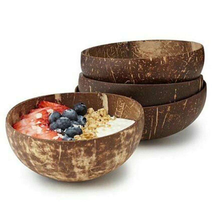 ชุดชามมะพร้าวขัดเงา2ชิ้นชามกะลามะพร้าวธรรมชาติพร้อมหลอดไม้ไผ่และช้อนไม้ของขวัญที่เป็นมิตรกับสิ่งแวดล้อมสำหรับมังสวิรัติ