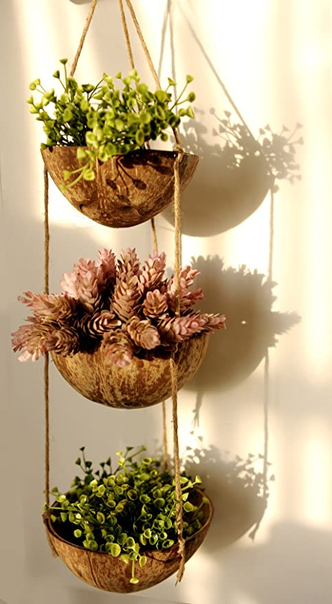 กระถางปลูกต้นมะพร้าวทำมือจากเวียดนามเปลือกมะพร้าวธรรมชาติเหมาะสำหรับปลูกต้นไม้ในร่ม