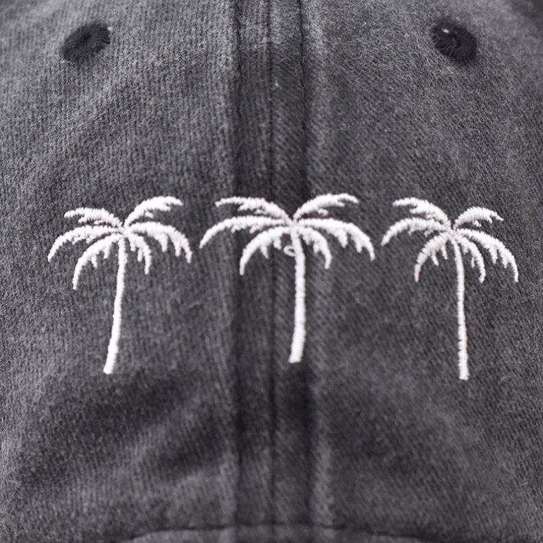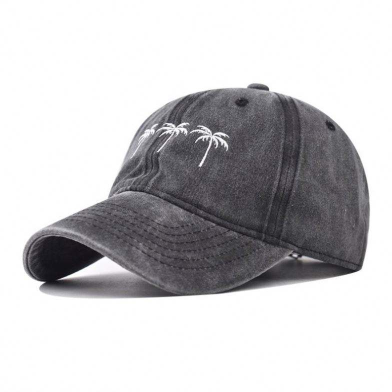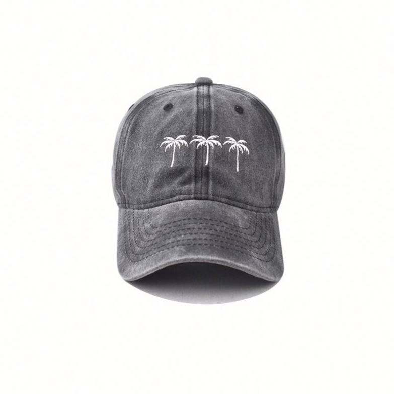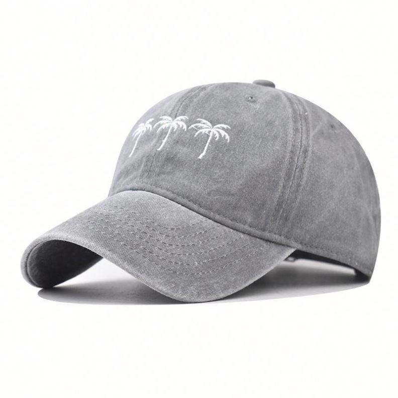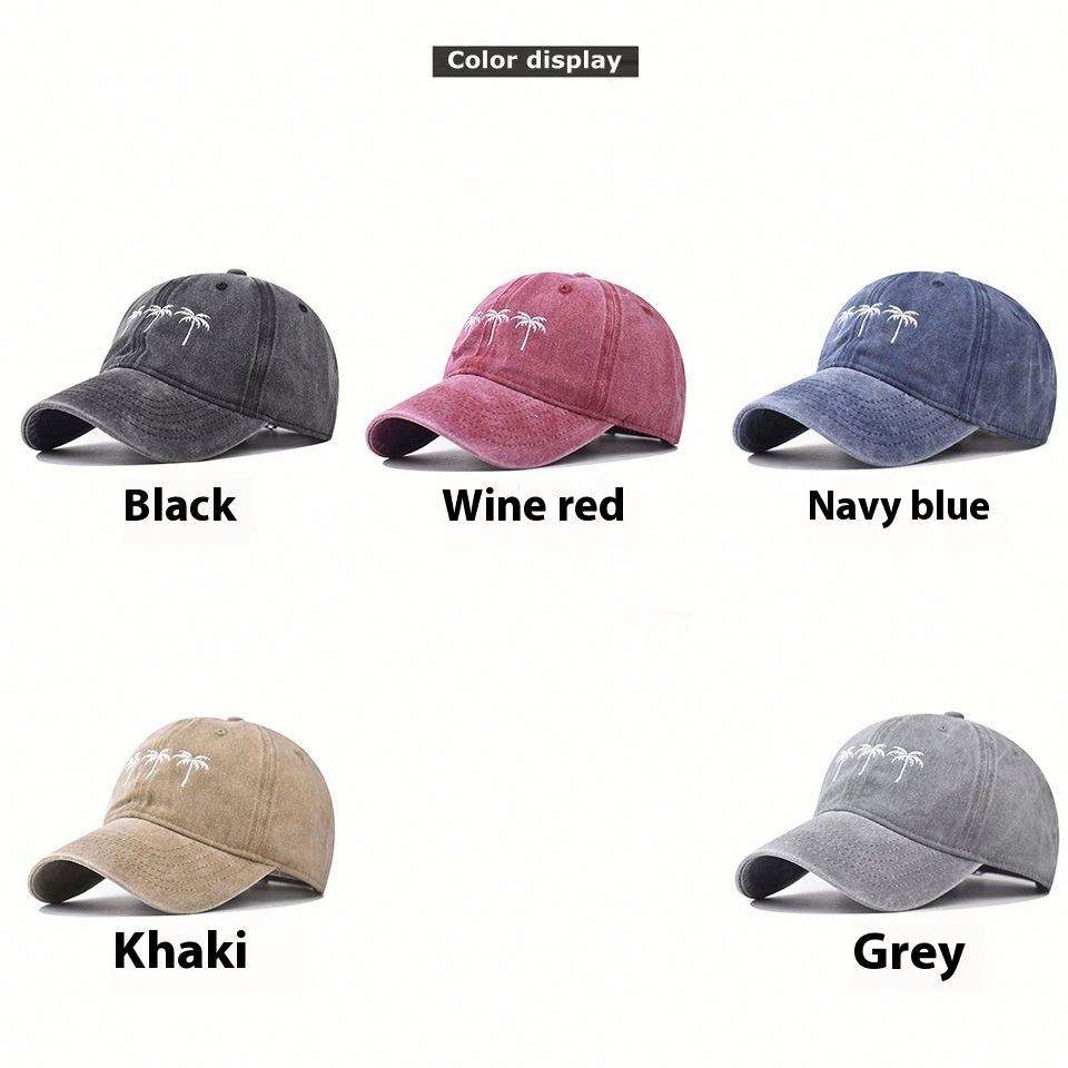 หมวกเบสบอลปักลายต้นมะพร้าว สไตล์สปอร์ต สำหรับกิจกรรมกลางแจ้ง ผู้ชาย ผู้หญิง ผ้าฝ้ายสีซีด หมวกกอล์ฟ