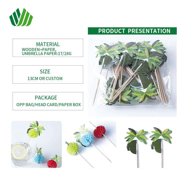 ไม้เสียบผลไม้แบบใช้แล้วทิ้ง รูปทรงต้นมะพร้าว สำหรับค็อกเทลและเค้ก