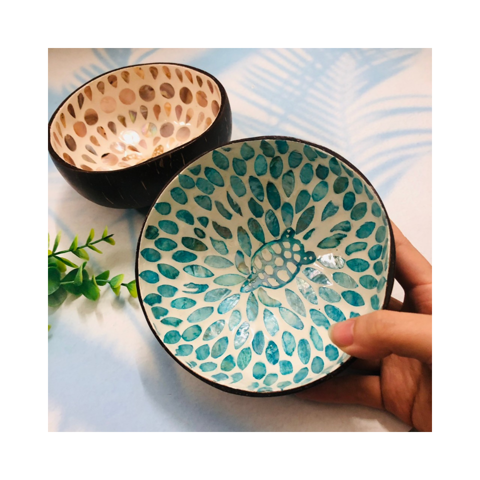 ชามมะพร้าวธรรมชาติฝังเปลือกหอยมุกสำหรับใส่เทียน