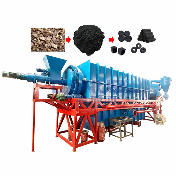 เครื่องผลิตถ่านมะพร้าวขี้เลื่อยไม้เครื่องทำถ่านคาร์บอไนเซชันแบบต่อเนื่องสำหรับเตาถ่าน