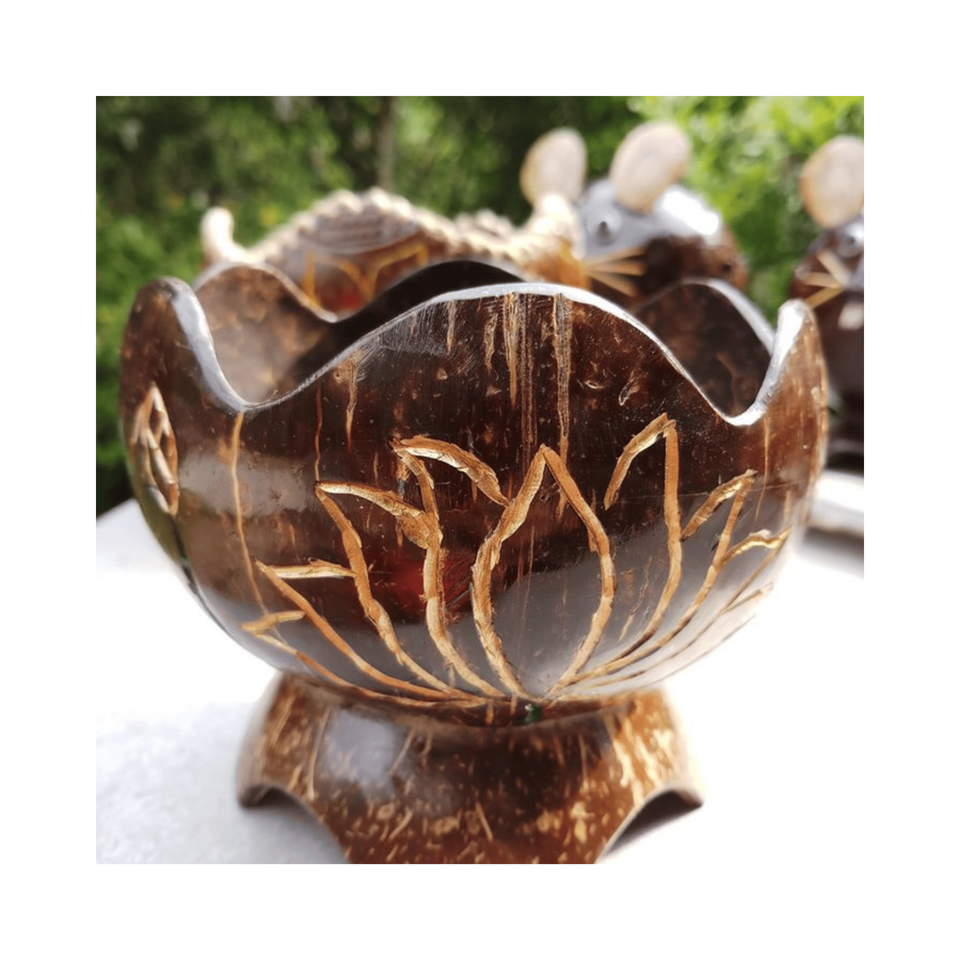 สินค้าแกะสลักรูปสัตว์กะลามะพร้าวแบบชนบทวัสดุ: เปลือกมะพร้าวใช้: การตกแต่งสวนแหล่งกำเนิด: งานฝีมือจากเวียดนาม