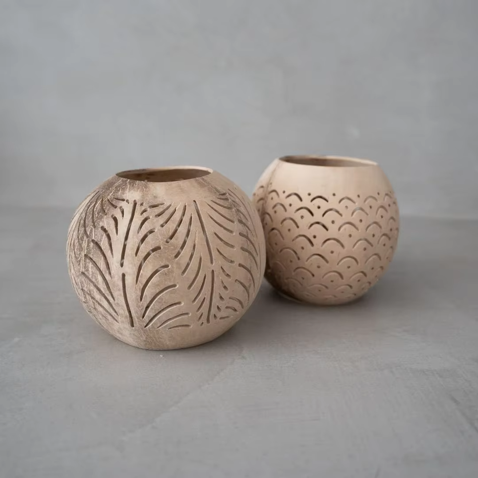 Coconut shell tea candle holder:D3,5 x H3,5 inch