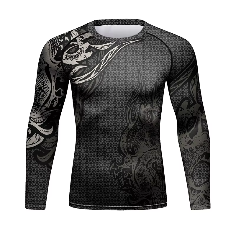 เสื้อฟิตเนสแบบรัดรูปสั่งทำพิเศษสำหรับ BJJ ชุดแรชการ์ดแบบยูนิเซ็กซ์ แขนยาว UPF50+ ผ้ายืดสแปนเด็กซ์/โพลีเอสเตอร์ไร้ตะเข็บ