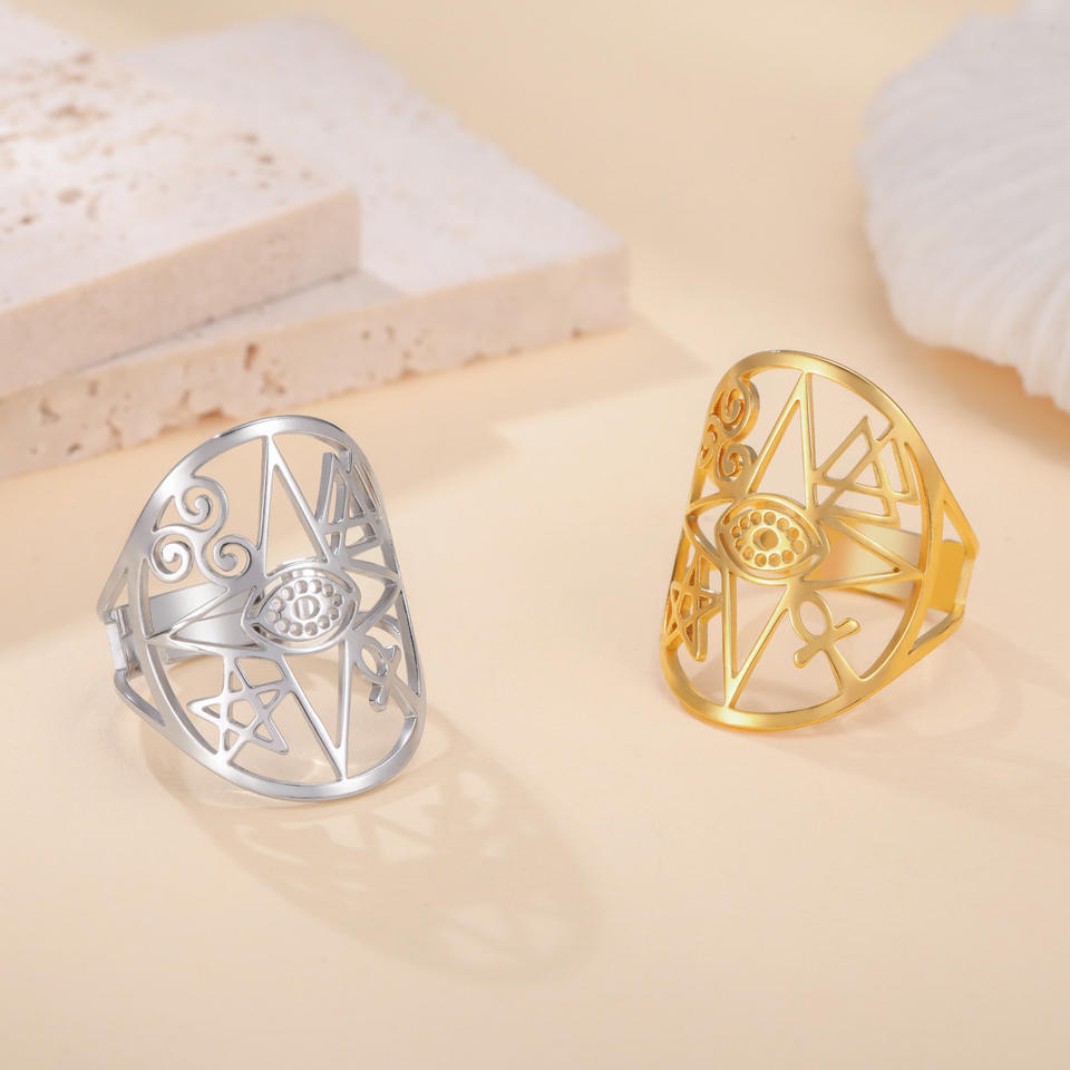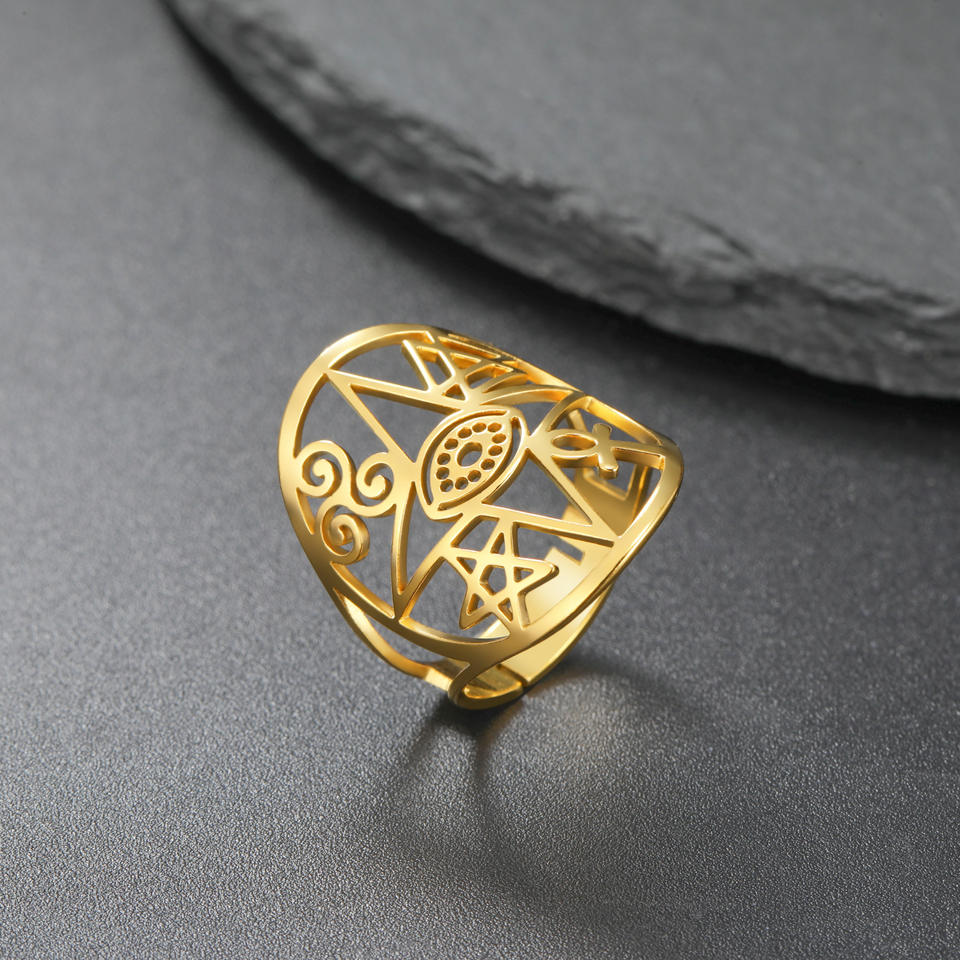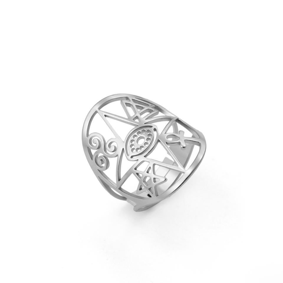 Coexist วงล้อธรรมะแห่งจิตวิญญาณแหวนปรับได้สัญลักษณ์นำโชคสันติภาพความสามัคคีทางศาสนาธรรมะวงล้อแห่งชีวิตสแตนเลส