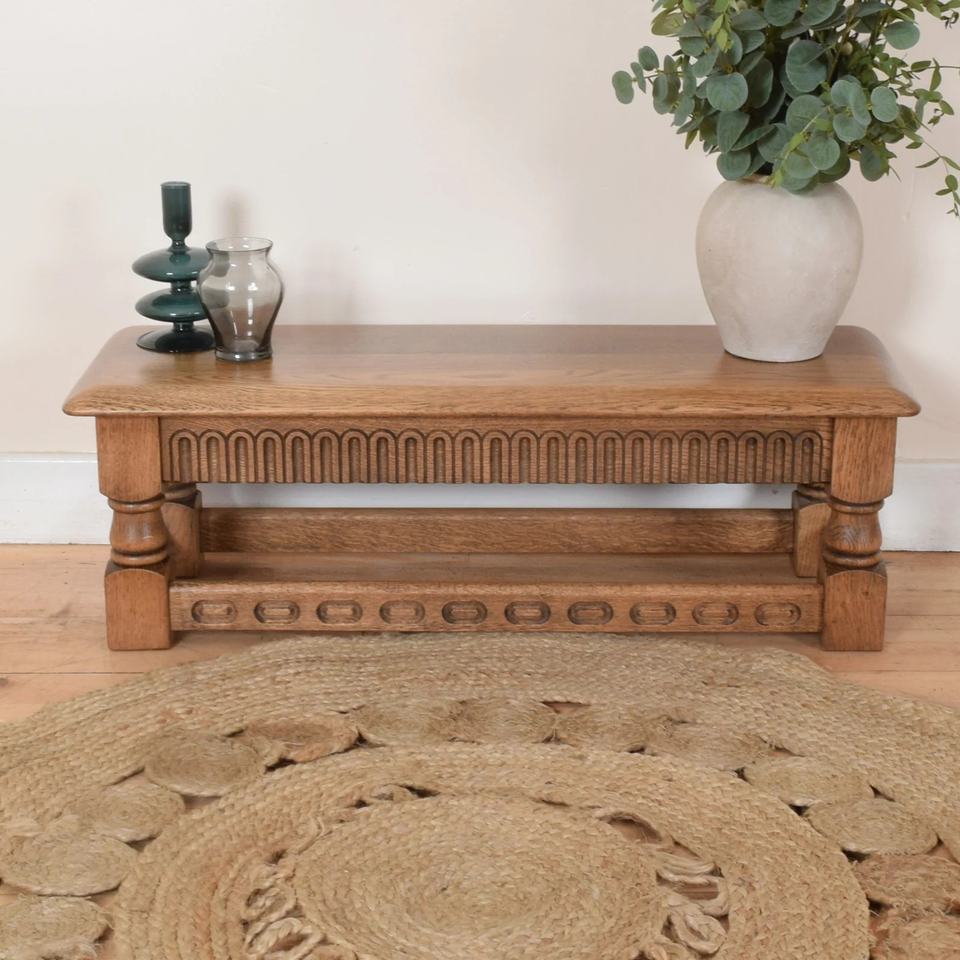 โต๊ะกาแฟทำจากไม้สักแท้คุณภาพสูง พร้อมการแกะสลักและงานตกแต่งแบบธรรมชาติ สำหรับใช้ภายในหรือภายนอกอาคาร